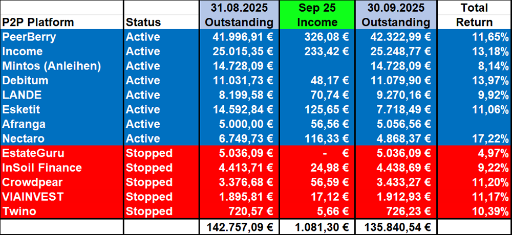 Every investor should think about their preferences and therefore which platforms fit into their own P2P portfolio. My personal P2P portfolio can be seen as an inspiration, but I would not recommend a 1:1 replication.