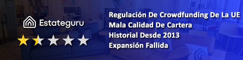 Estateguru es una plataforma P2P estonia, lanzada en octubre de 2013, en la que los inversores pueden invertir en préstamos inmobiliarios y promotores de Europa con un importe mínimo de 50 euros. El tipo de interés suele rondar el 10%.