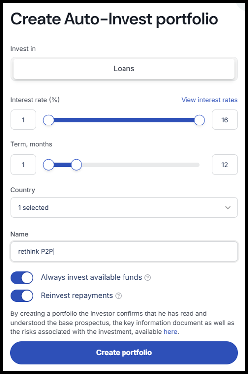 El tipo de interés de los préstamos es del 8,5% (3 meses), 10% (6 meses) o hasta el 12% (12 meses). Mi rentabilidad total personal (invertido de forma continua desde 2020) es del 10,4%.