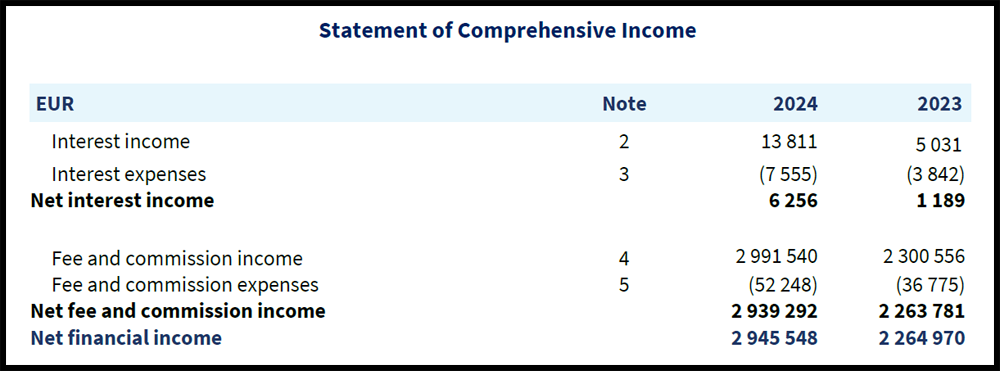Según el informe anual de 2024, la plataforma Twino (AS TWINO Investments) generó unos ingresos de aproximadamente 2,9 millones de euros. Los ingresos provienen principalmente de comisiones y tarifas por los servicios de la plataforma. Estas consisten principalmente en tarifas cobradas al prestamista polaco Fincard, que ofrece sus préstamos en la plataforma Twino para su financiación.