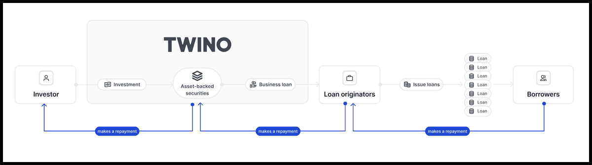 Desde 2021, Twino es una plataforma P2P regulada supervisada por la Comisión de Mercado de Valores y Capitales de Letonia (FCMC). Desde entonces, los inversores ya no invierten en contratos de cesión (derechos de crédito), sino en valores respaldados por activos.