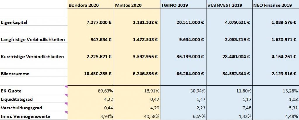 Die immateriellen Vermögenswerte sind bei Mintos (erneut) auffällig hoch gewesen. Diese machen auf der Aktiva-Seite 2,35 Mio. Euro aus, was mehr als 40% der gesamten Bilanz entspricht (2019: 26%). Verglichen mit Bondora (3,93%), Twino (6,69%) oder VIAINVEST (1,33%), scheint dieser Wert extrem hoch zu sein.