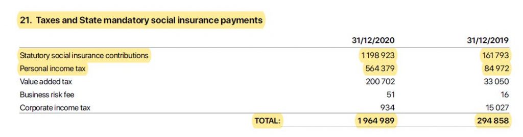“The year end balances of tax payments constitute of current monthly tax obligations and deferred tax payables for the payments originally due throughout year 2020. The repayment schedule of deferred payments agreed with the State Revenue Service was spread over year 2021 and repayment was planned from operational cash flow. However, along with additional capital raised in the beginning of year 2021 (see Note 17), all deferred tax payables have been repaid in February 2021 ahead of the schedule.”
