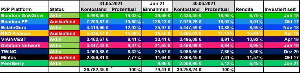 Mein P2P Portfolio im Juni 2021