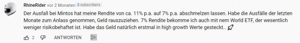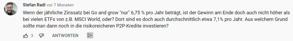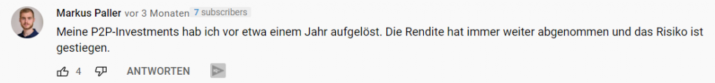 Das Muster ist bei dieser Art von Kommentaren häufig sehr ähnlich. Es wird auf die Risiken von P2P Krediten verwiesen und gleichzeitig wird eine deutlich bessere Alternative gegenübergestellt. Ob es sich dabei um Aktien, Immobilien oder Kryptowährungen handelt, spielt dabei keine Rolle.